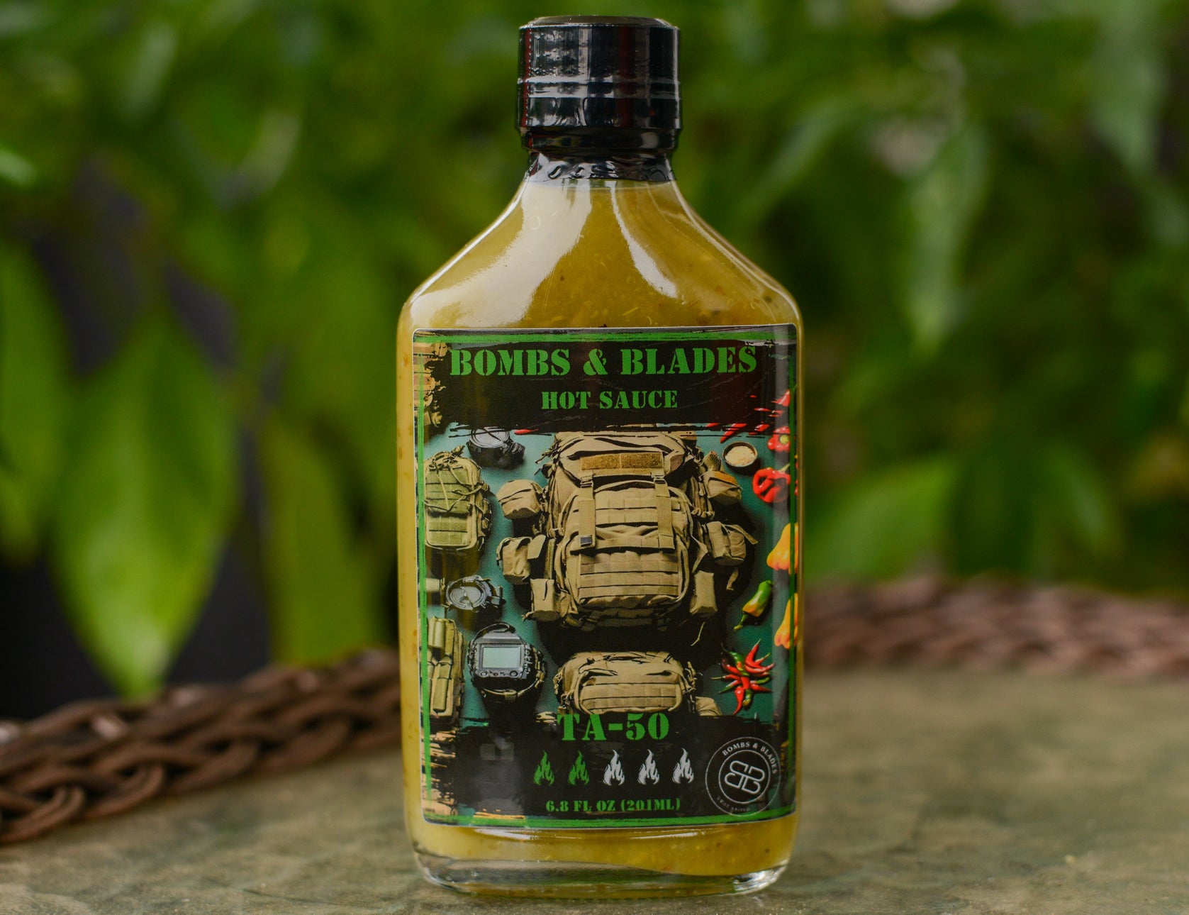TA-50, THE CODE NAME FOR STANDARD ISSUE EQUIPMENT. THE BEST SELLING SAUCE IN THE INVENTORY, TA-50 FUSES THE TRIFECTA OF JALAPENO, CILANTRO, AND LIME TO PUT THE FINISHING TOUCH ON YOUR MEXICAN FOOD, OR ANYTHING REALLY! THERE'S A REASON TA-50 IS STANDARD ISSUE. 6.8FL OZ